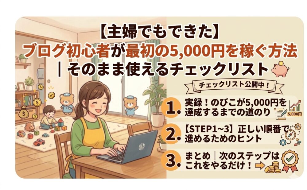 ブログで最初の5,000円は、正しい手順で進めれば初心者でも十分に目指せます。