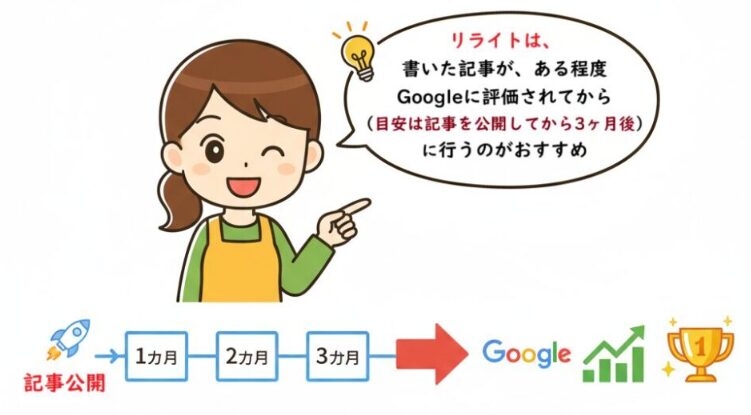 リライトは、「書いた記事が、ある程度Googleに評価されてから」行うのがおすすめです。