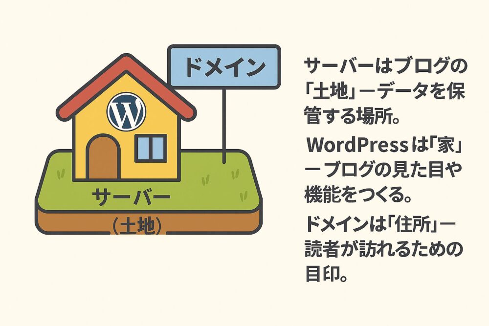サーバーは、ブログのデータを保管しておく「土地」です。サーバーがないと、ブログはインターネット上に公開できません。