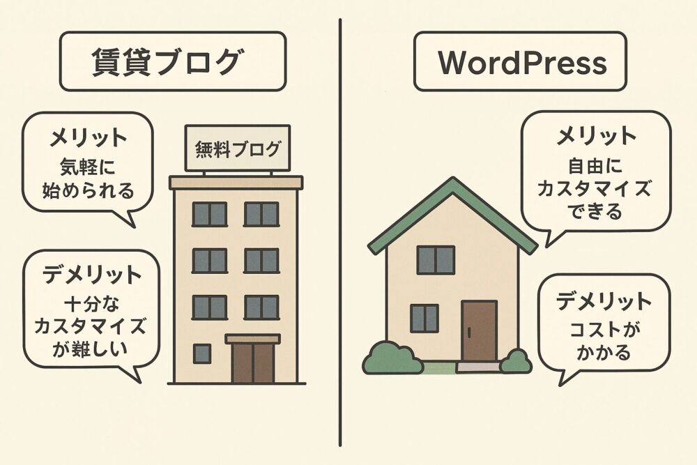 まず、無料ブログとWordPressを「家」に例えてみましょう。
