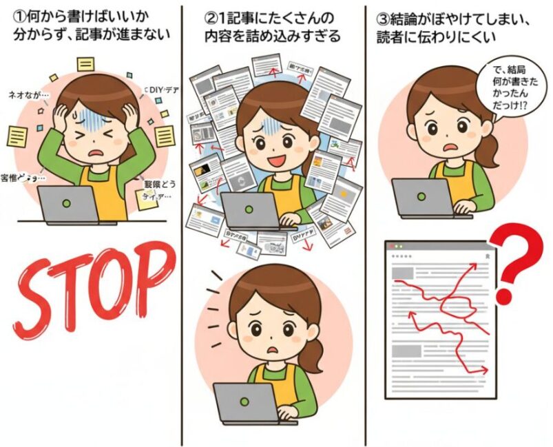 - 好きなことだけ書く → 読者が求める情報とズレる