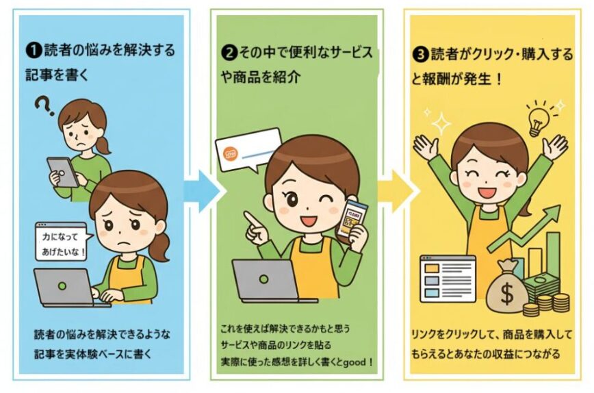 アフィリエイトは、ブログで紹介した商品やサービスが購入された際に報酬が発生する仕組みです。ASP(アフィリエイト・サービス・プロバイダー)に登録し、商品リンクをブログに掲載することで収益化できますあなたのブログで紹介した商品やサービスが読者に購入されると、報酬が発生します。