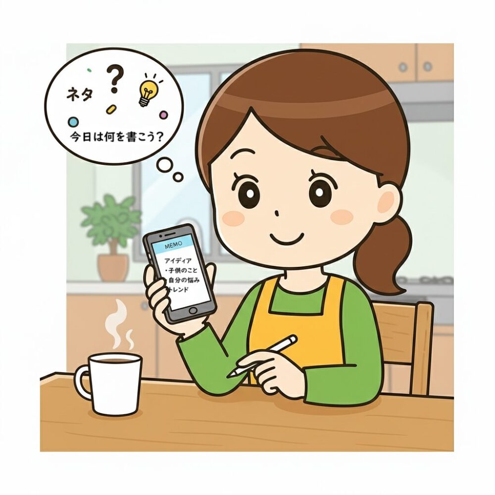 子どもが学校に行ったあと、ちょっと一息ついたタイミングで「今日は何を書こう?」とメモアプリを開きます。