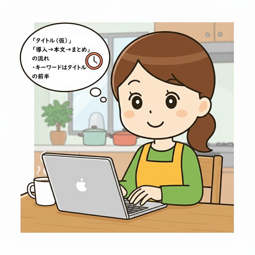 お昼ごはんの準備前などのスキマ時間に、タイトルとざっくりした構成を作ります。