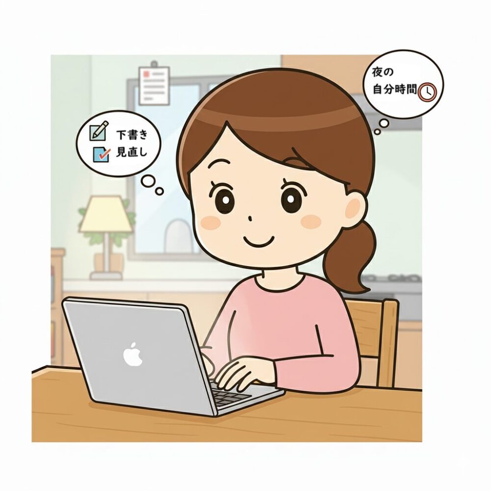 子どもを寝かしつけたあとや、夜の自分時間にちょこっとPCを開いて、下書きや過去記事の見直しをします。